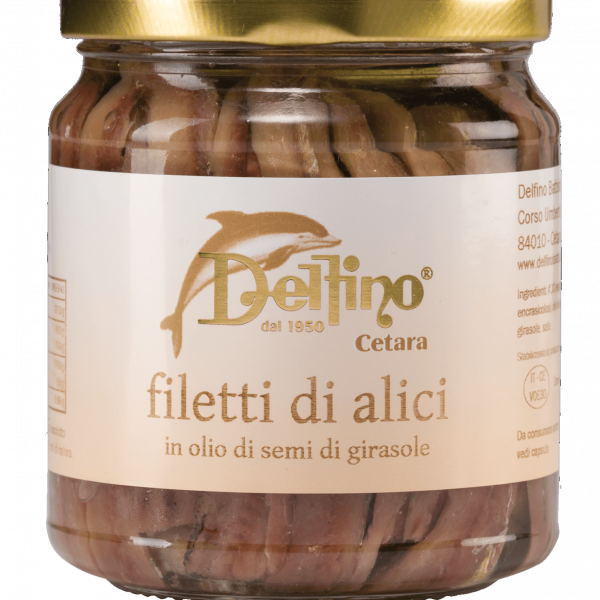 Alici a Filetti vaso 500 ml. "Delfino" Codice: 143 Cost per Kilo € Dettagli su Alici a Filetti vaso 500 ml. "Delfino"